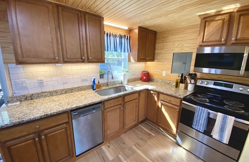 Newly renovated, refreshingly colorful, and fully stocked with everything you need for a rejuvenating stay at the beach. Lounge on comfy furniture, stream your favorite shows on large smart TVs, or relax in a rocker on the brand-new screened-in porch with a vaulted ceiling. The spacious kitchen is equipped with new stainless steel appliances, granite countertops, and everything you need to enjoy a delicious home-cooked meal with your crew. The home is located in the prime of the island, a short bike ride from the most popular restaurants, and just a 9-minute walk to an absolutely beautiful beach.