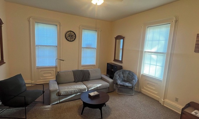 Discover the allure of our historic brick home, nestled in the heart of Seneca Falls. With its timeless elegance and 10-foot ceilings, this quiet and private retreat promises a memorable stay. Step outside to explore nearby attractions—the Women’s Rights National Historical Park, the It’s a Wonderful Life Museum, and the Finger Lakes await. Whether you’re sipping local wines or strolling through history, our cozy oasis invites you to create your own chapter in this remarkable town.