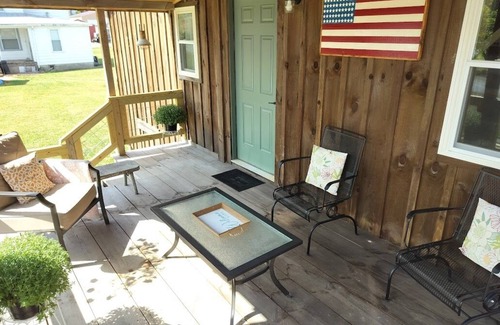 Welcome to the Cabin on Panther Lane. Built on the bones of a 1920's barn, the brand-new cabin is a one bedroom, one and one-half bath cozy, all wood, all electric delight. The covered front porch is spacious with mountain views. Parking is available at the front and back doors. The living/dining/kitchen space is a beautiful open area with an electric fireplace (for ambience or auxiliary heat) and smart television. The kitchen is fully equipped with a dishwasher, five-burner stove with a convection and air-fry oven, and full-size refrigerator. The bedroom has a queen-size bed. a workspace area and a closet, as well as a smart television. The cabin is equipped with wi-fi and internet. There are two sleeper chairs in the living area - great for the kids or extra guests. The full bath also serves as the laundry with a washer and dryer. The cabin is heated with an electric mini-split.