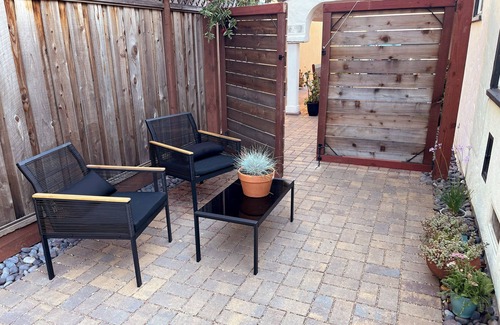 This bungalow is perfect for a couple or 2 roommates. Also nice for 1 person who welcomes a friend or family member for a weekend visit. There is a cozy breakfast room that could be a dedicated home office. If you open all the windows of the breakfast room it feels just like being outside. Each bedrooms is very private and quiet with queen bed, lux linens, quality mattress and pillows, wooden bureau, table, bench for your suitcase, and a closet with a shoe rack. There are four outdoor seating/garden areas with a good mix of sunshine and shade, plus an umbrella-covered patio table for outdoor dining. The small Gravenstein apple tree offers cooling shade and is abundant with apples in the fall. The yard is surrounded by neighboring oak trees and redwoods that glow in the setting sunlight. Garden areas bloom year-round and attract bees, butterflies and hummingbirds.