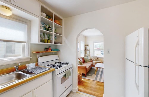 Whether you're looking to unwind after a day of exploring or simply relax with your loved ones, this historic bungalow provides the perfect setting. With board games and outdoor lighting on the front porch, there's something for everyone to enjoy. Plus, with central AC and a washer/dryer for your convenience, you can truly make yourself at home during your stay.