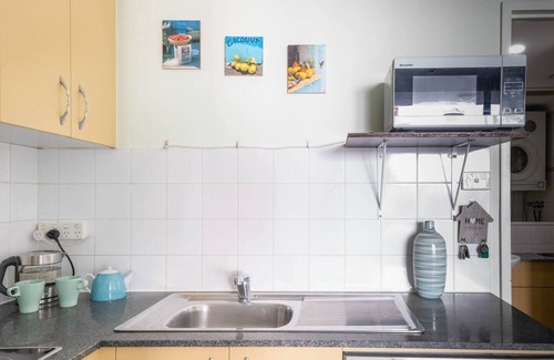 Dine inside at the four-seater table or slide open the doors from the lounge area and eat on the balcony. Afterwards, kick back on the sofa and watch some TV or choose from a selection of books and reading material. Guests also have access to the building's communal rooftop, offering outdoor seating as well as a pool and spectacular views overlooking the city.