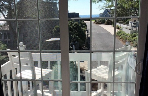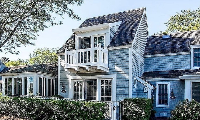 Adorable Nantucket-style two-bedroom AIR CONDITIONED townhome with upper balconies and gated brick patios offering breathtaking, panoramic and stunning ocean views of Nantucket Sound.