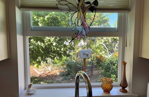 Adjacent, you'll find a spacious bathroom, closet and dressing area equipped with a washer/dryer walk-in shower and all the essentials. Just outside your kitchen window is a beautiful seasonal garden with a grape arbor and fruit trees. Enjoy outdoor dining on the patio or grape arbor.