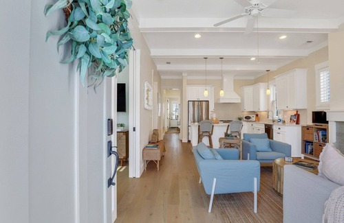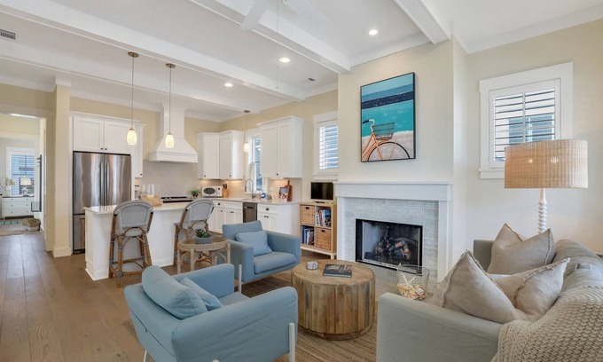 Welcome to 12 Hamlet, a charming retreat in the award-winning Habersham community of Beaufort, SC. This inviting two-bedroom, two-bathroom home offers the perfect blend of comfort and convenience. The primary bedroom features a king-size bed, a TV for unwinding, a spacious walk-in closet, and an ensuite bathroom for added privacy. The guest bedroom is equally cozy with a queen bed, making this home ideal for couples, families, or friends traveling together.