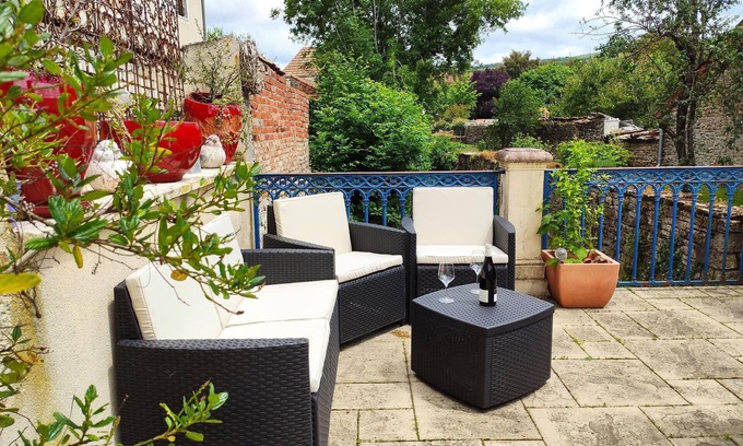 Maison Saint-Pierre is a charming house with a magnificent terrace overlooking the river. It can accommodate 2 to 8 people and is located in the center of Nolay close to shops and all amenities. The cottage is composed of 4 bedrooms, two with shower room and wc, a fully equipped kitchen, a dining-living room, a games room with billiards and darts, a bathroom, an independent WC. A garage is available for your two-wheelers.
