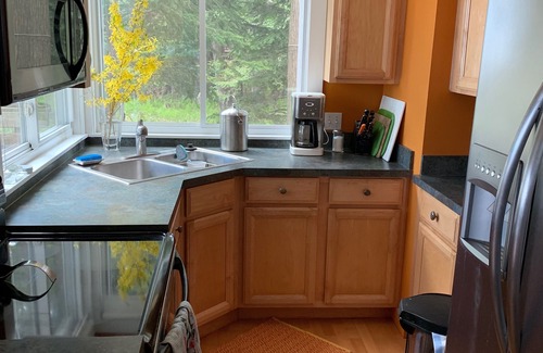 The kitchen is stocked with everything you could need, from microwave to espresso maker to blender to baking equipment. Lovely outdoor deck for outdoor dining and lounging, or you may prefer to hang out in the hammock with a perfect view of the lapping waves.