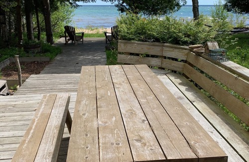 Three bedroom + den (with sleeper sofa) /two bath cottage, sleeps seven in beds and two more on queen sleeper sofa. All the amenities your family will need for a relaxing getaway on sparkling clear Lake Huron! Stone wood-burning fireplace, laundry room with full-size W/D, all appliances. Canoe, kayak, charcoal grill and fire pit available for your use. Big deck for enjoying the views. WiFi and television (no cable or dish) with DVD player.