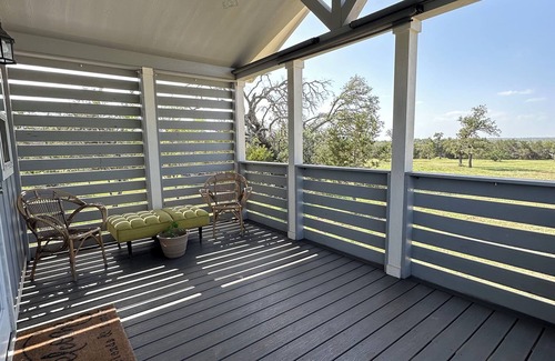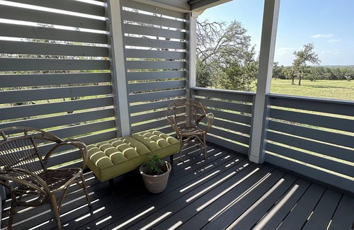 This 1-bedroom guesthouse is a perfect space for your escape to the Texas Wine Country. The bedroom features a nice queen, adjustable bed, and the bathroom includes a large shower. Starlink Wi-Fi and a full kitchen awaits. There's a full size washing machine and dryer. Fredericksburg has so much to experience with the wine country just a few miles away, enchanted rock and lots of shopping and wonderful restaurants. Let us know if you need any rides to and from your choices of wineries. Our Swim Spa is a beautiful spot to watch the sunset, enjoy a glass of wine and unwind!
