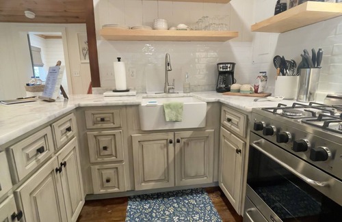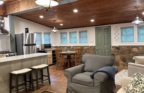 Take a nap or read a book while listening to the soothing sounds of two amazing creeks that run directly behind the cabin. This small and charming cabin was built in the 1950's with local rocks from Rocky Bottom. Recently renovated to include all modern amenities and well appointed comforts. Located in the Blue Ridge Mountains, this cozy cabin is part of the beautiful Jocassee Gorges and has numerous waterfalls and hiking trails within a short driving distance. Rocky Bottom is nestled in the forest directly below the highest mountain in South Carolina, Sassafrass Mountain. The waterfalls and rock formations in this area are an amazing sight to see. We hope you will come to take a break from the hustle and bustle and relax to the sounds of rushing water, birds singing and take a deep breath of fresh mountain air. Shopping and Restaurants are a short drive away in Rosman and Brevard. Come make some memories at Rocky Bottom Retreat!