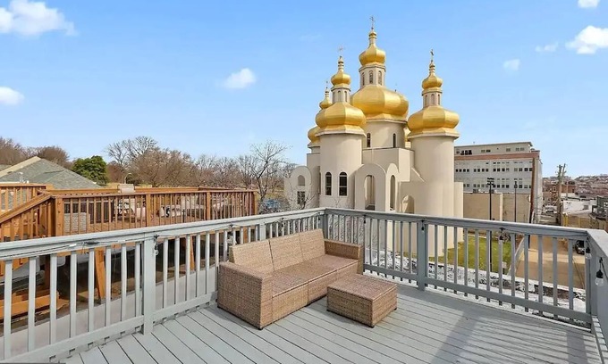 Our 2 bedroom, townhouse is located a 10 minute walk from both Fells Point & Canton two popular neighborhood locations for shops bars, and restaurants. We are right across from the beautiful Ukrainian church and right next to Patterson park.