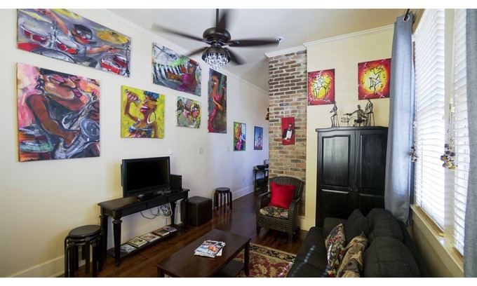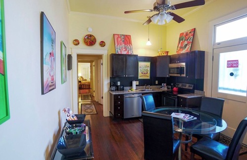 Newly renovated with impeccable detail, this property features high ceilings, ceiling fans, and original gorgeous hardwood floors. Décor is an elegant mix of art and luxurious comfort, a great place for an intimate rendezvous as well as a fun family gathering.