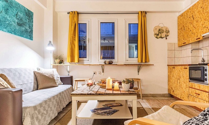 Elegant studio in the heart of Kalamata with a private parking spot, ideal for couples, professionals, and digital nomads. Features a double bed, equipped kitchen, A/C, and VDSL Wi-Fi. Located in a quiet area just steps from the main square, restaurants, and museums. A bus stop for exploring the city and the beach (2 km away) is only 200m from the property. A smart and flexible choice for a comfortable stay.