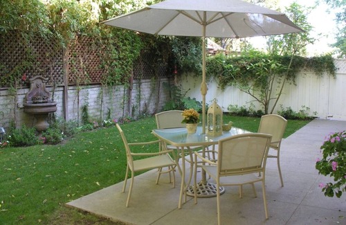 Set back among mature trees on a quiet residential street in Valley Village, this downstairs unit is available for short or long term stays. A cozy home away from home, the unit is fully furnished and fully equipped with its own washer and dryer, private landscaped yard with patio furniture, fountain and barbecue. Pets are welcome. Located close to major studios and just minutes from Universal Studios, Universal Amphitheater concert venue and City Walk, NOHO Arts District, Metro Rail to Hollywood, (Graumanns Chinese Theater, Kodak Theater and Hollywood Blvd), downtown and beyond.