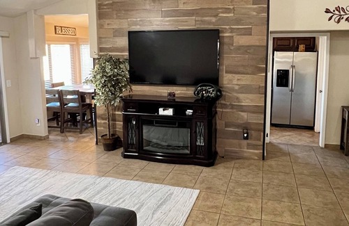 Stay comfortably in Tucson at this 4-bedroom house. The bedrooms feature 1 king bed, 1 queen bed, 1 twin bed, and 1 full bed, ensuring an excellent night's sleep for all guests. The property offers AC, heating, a washing machine, WiFi, an iron, and a hair dryer, providing enjoyable and convenient amenities. With 2 bathrooms equipped with hair dryer and showers, getting ready in the morning is a breeze. Enjoy outdoor TV’s and entertainment while swimming and relaxing by the pool! We look forward to hosting you at our place.