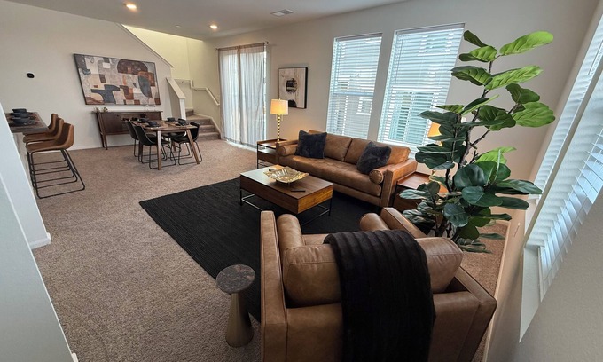 Charming, fully furnished townhome near Denver with 3 BR and 25 baths + loft is located in Commerce City. Charming, fully furnished townhome near Denver with 3 BR and 25 baths + loft provides accommodation, featuring TV, Bedding/Linens, Wellness Facilities, among other amenities. This House features TV, Bedding/Linens, Wellness Facilities, to make your stay a comfortable one.