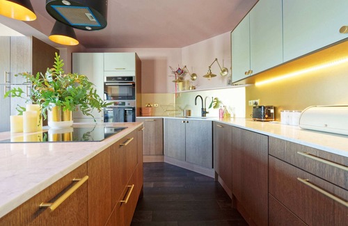 Experience a delightful stay in this pet-friendly house located in the heart of the Kent Downs. This property boasts a BBQ grill, indoor fireplace, and a beautiful garden. With 4 bedrooms and 2.5 bathrooms, it's ideal for families. Enjoy the convenience of a fully equipped kitchen and explore nearby attractions in Canterbury. Unwind in comfort and charm, surrounded by stunning countryside views.