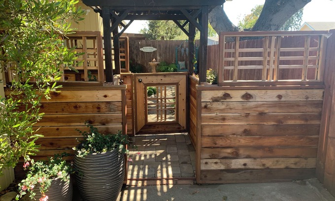 During your stay you may sight a white and black cat with a black heart on her paw. Her name is Daisy Coco Chanel, she spends most of the day sleeping in various areas of the yard. If happen to spot her feel free to pet her she is friendly but please do not allow her to visit you in the house. The owner’s live on property in the front house.