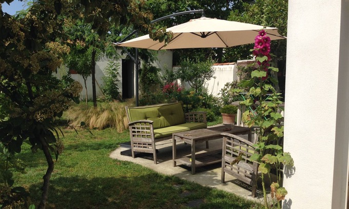 The house consists of two renovated old winery offering a space of 120m2. She is facing a beautiful garden, not overlooked, and equipped.