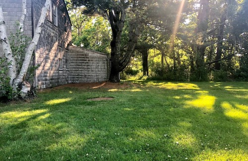 Tucked among mature trees and surrounded by lush greenery, this historic home offers a peaceful retreat while being close to everything. The house blends rustic charm with comfort and simplicity, perfect for a relaxing getaway. Whether you're sipping your morning coffee on the lawn or enjoying a sunset walk to the shore, you'll love the quiet beauty of this property.