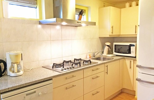 Holiday home De zoete Inval has a cozy living room with a large dining table and a sitting area around the wood stove. The separate kitchen is equipped with all modern conveniences, among others. a five-burner stove (including wok burner), filter coffee maker, Senseo, Nespresso, toaster, combination microwave and dishwasher. On the ground floor there is a single bedroom (80x200) and a double bedroom (160x200) . Holiday home De zoete Inval was slightly expanded in December 2015, there is a modern bathroom on the ground floor now with a spacious walk-in shower, sink and toilet. There is also a separate toilet in the hall. The staircase in the hall takes you to the first floor, here are two more bedrooms. One bedroom has two single beds (80x200) and a cot and the other bedroom has three single beds (80x200). There is also an extra play loft for the children, furnished with Fatboys and a TV.