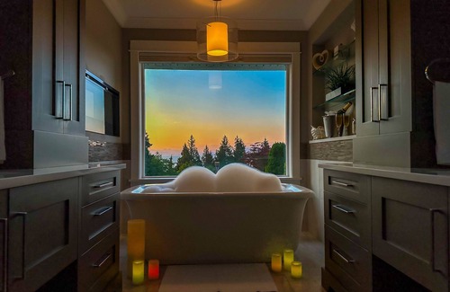 Salish Peaks Escape is nestled on the side of sloping hill and overlooking where the ocean meets the Salish Peaks. Thoughtfully designed for larger groups but limited to 12 people across 2 guest rooms with no more than 4 adults by Nanaimo By-laws. All the amenities of the city are within reach, yet far enough away to provide a private stay. Enjoy all that the Harbour City has to offer from pristine beaches to a vibrant downtown. Experience it to believe it, and make this your next destination.