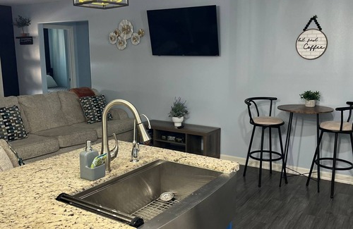 Gather the family and enjoy the comfortable couches and the 50" roku smart tv to watch your favorite movies, or head over to the TV stand where you will find board games to enjoy with family and friends. Enjoy Netflix, Hulu, Disney plus, max, and many more streaming services.
