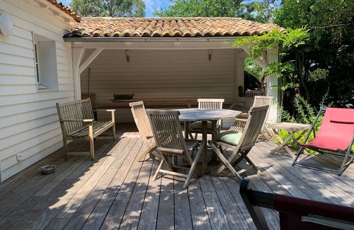 The wooded and lit garden offers a large terrace and a covered summer dining room, a barbecue and a brazier are at your disposal