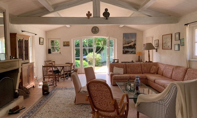 In the heart of the village of Portes en Ré, a few steps from the beaches, a 7-room house, on one level, full of charm, not overlooked, with a wooded garden.