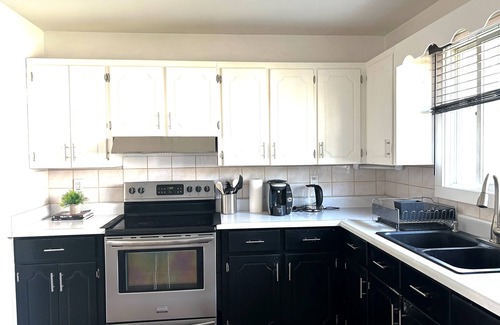 No Wifi on property! If you want simple and stylish- we are your jam! With 3 bedrooms, each with a queen bed and a massive backyard with access the Millenium Trail from the backyard, this spot is perfect for gatherings!. Your family will be close to everything when you stay at this centrally located place.Please note, there is no WIFI and no Dishwasher on this property.