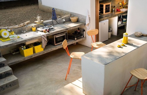 House built in white lime inspired by my trips to Ibiza and Greece, beautiful sea view, 10 minutes walk from the marina, it is composed of 2 blocks separated by a patio with benches in shaded buildings, an outdoor kitchen , one also inside, as well as an outdoor shower, for returning from the beach! 3 double bedrooms, the beds are raised in concrete, the bedrooms are refined, no furniture to avoid cleaning on vacation !!! for children under 7 years old a folding bed and a suitcase bed are available