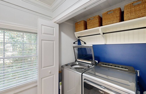 The house includes essentials such as a washer/dryer and a TV with Netflix streaming. Step outside to the patio to enjoy the Carolina sunshine or gather around the firepit for a cozy evening under the stars.