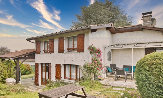 Located in a picturesque village, this house offers all the comfort you need for an unforgettable stay. Enjoy a large, lush garden and a serene environment.