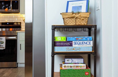 This real log cabin was updated in 2023 and has 3 bedrooms, 2 full bathrooms and a flex mudroom complete with new washer / dryer and sink. The beautiful fully equipped kitchen is updated to a modern farmhouse style, complete with high ceilings, white shaker cabinets, white subway tile, white calacatta quartz countertops and a white farmhouse sink.