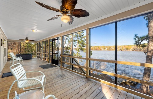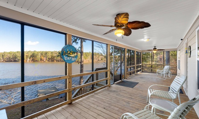 Secluded getaway on wonderful High Falls Lake. Cottage has sunny kitchen w large gas stove and all your needs (but no dishwasher), perfect family room w/fireplace and excellent WI-FI & Roku TV, huge BR w/2 brand new Queen beds, extra large screened porch, gas grill, firepit, kayaks, dock and more! Located about an hour south of ATL and only 2 miles from I-75. Come enjoy and relax in this private lakefront cottage that is only minutes from High Falls State Park and other outdoor attractions.