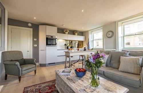 A city-lovers delight, this charming 2nd floor apartment for two in central Bath has a spacious double bedroom and a light, bright open-plan living, dining and kitchen area with views.