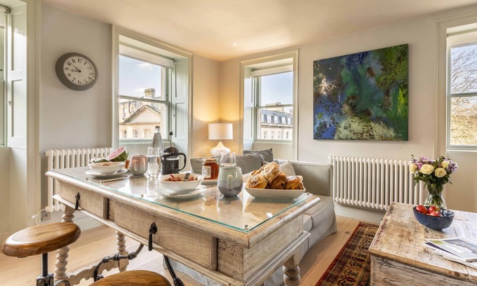 Charming, light and bright apartment for two in central Bath is located in Bath. Charming, light and bright apartment for two in central Bath provides accommodation, featuring TV, Security/Safety, Wellness Facilities, among other amenities. This Apartment features TV, Security/Safety, Wellness Facilities, to make your stay a comfortable one.