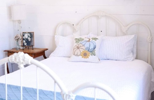Built in the late 1800’s, this 700 sq/ft stunning apartment is located in the Historic District Marion Street. The apartment is open concept and offers a cozy king size bed, luxurious bathroom fitted with an antique sink and rainfall shower head, and the cutest kitchen with a farmhouse sink. Other architectural features include original exposed beams, brick walls, plantation shutters–and the entire space is wrapped in vintage creams and whites.