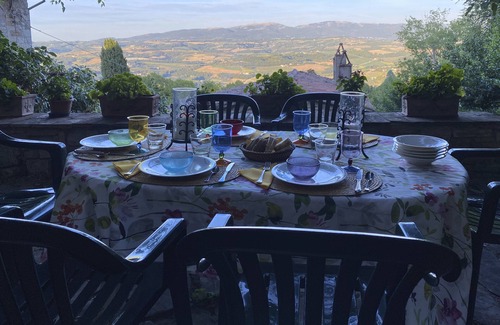 Not many properties in Todi with such views and with a 400 sq. meter garden inside the city walls. During the cold months we ask that gas and electricity be reimbursed (as well as wood if any is used in the fireplaces). During summer rentals only the electricity will be charged. Both are metered. The City of Todi levies a tourist tax of €1.5 per person for a maximum of 4 nights. We will collected this at the end of your stay.