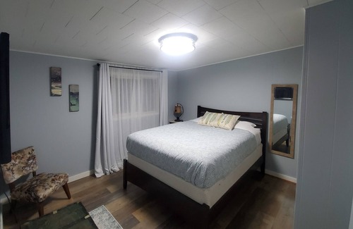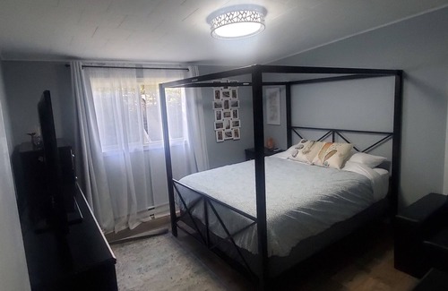 This cute boutique style home is full of character. The house was built in 1941 and has just recently been renovated and updated to keep some of the old character. The detail is thorough, from the cute light-fixtures, barn door, inset shelving, black anchor hardware, in-ceiling surround sound, nautical decor, local books, large sprawling yard, beautiful gardens, a large sun deck with a BBQ and most importantly cozy beds. It is fairly close to the Sea Plane Base and Rushbrook Trail, convenience stores, a gas station, and across the street from a bus stop. The home is a few minutes drive from the downtown core, recreational complex, walking trails, parks, the golf course, library and the marina.