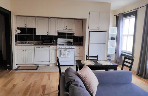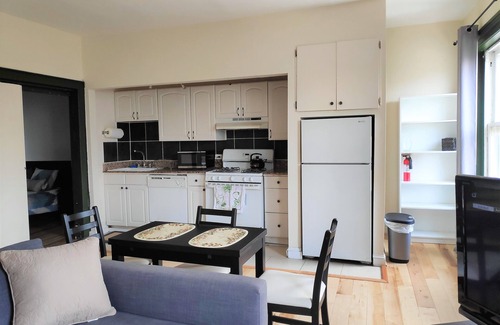 The apartment itself is a quiet and private one bedroom third floor walk-up, located in a secure brownstone with just three other apartments in the building. Oversized windows bathe your fully equipped kitchen and living room with bright light. You will have all you need to make a delicious meal from home. The living room is equipped with a comfy sleeper sofa, smart TV and kitchenette table. The bedroom has plenty of closet and dresser space and a queen size bed. Off of the bedroom is a full bathroom with combo shower/tub and your own washer/dryer in the apartment. Whether a travel nurse, MICA, Hopkins or UB student or professor, explorer or just here for fun and loved ones - we think you’ll love life in Bolton Hill in this comfortable one bedroom apartment!