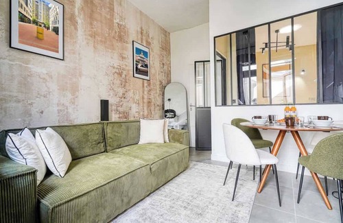 Located in the heart of the 2ᵉ arrondissement, this elegant loft offers a warm, modern setting for your stay in Paris.