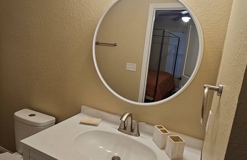 Newly built, located in the heart of Gainesville, this apartment is a dream. It features a spacious living room, dining room, full kitchen, king size bed, a modern bathroom with a refreshing shower, The property is conveniently located to everything and boasts of several amenities to make guests feel right at home. Complimentary Wi-Fi, an in-suite washer and dryer, full kitchen, front door parking and much more await you during your stay! The serene atmosphere of this fantastic property is perfect for a relaxing getaway. We hope you'll enjoy your stay at our apartment.