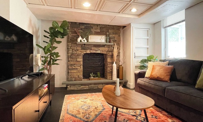 Enjoy a stylish and comfortable stay in the heart of Nyack Village! This 1-bedroom apartment is close to shops, restaurants, parks, and public transportation. A private entrance leads to an enclosed patio. A spacious living room equipped with queen pull-out sofa and Smart TVs in the living room and bedroom. The kitchenette includes modern appliances. High-speed WiFi, a dedicated parking spot, and a full washer/dryer are also included for your convenience.