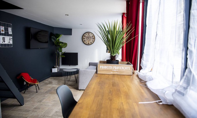 The house, full of charm, is located in the old farmhouse of the Abbey of Saint Leu d'Esserent, which was completely renovated in 2020 and carefully decorated. It includes a garden and a secure parking space for one vehicle.