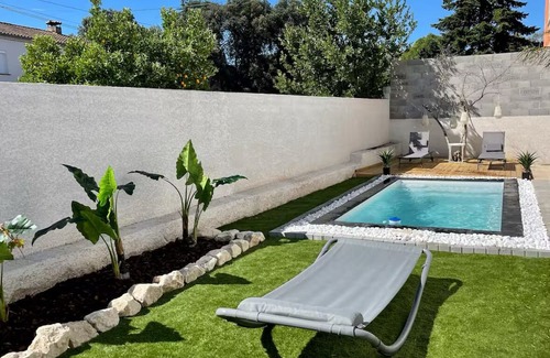 Charming, QUIET ground floor villa with private pool is located in Boisseron. Charming, QUIET ground floor villa with private pool provides accommodation, featuring Parking, TV, Security/Safety, among other amenities. This House features Parking, TV, Security/Safety, to make your stay a comfortable one.