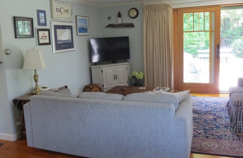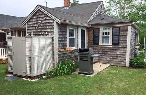 This sunny, cozy Cape-style ranch is a short driving distance to both Harding's and Oyster Pond beaches and the quaint village of Chatham. This charming home has easy one level living with a queen master bedroom and a guest bedroom with two twins. Each bedroom has a window a/c unit and WiFi. Enjoy sipping your coffee on the sunny deck, and rinse off the sand from the beach in the great outdoor shower. Welcome bag included compliments of the owner-reusable bag filled with cleaning and paper products. A perfect spot for your family's vacation! Call us at Chatham Rentals and let us help you plan your stay.
