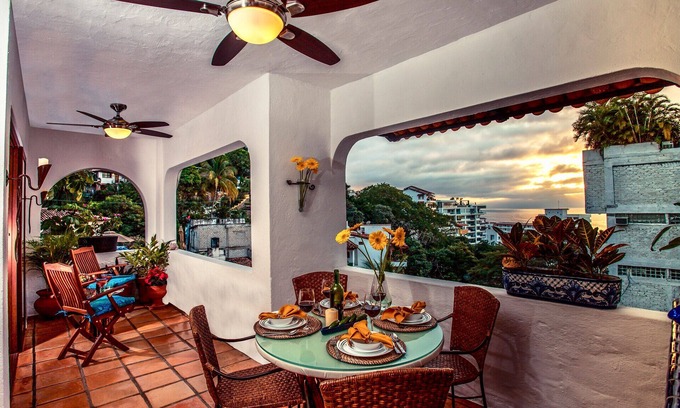 This hidden gem (with its charming covered terrace), is nestled just above Olas Altos, and just steps from all of PV's vast amenities. It is the perfect place to start your day with your morning coffee or wind up the evening with your favorite glass of wine ... just relax and take in the sights and sounds of the Romantic Zone and Old Town Vallarta.