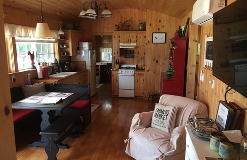 Kitchen amenities include, stove/oven, fridge, sink, coffee maker, toaster, microwave, blender and all the service ware you need! A Samsung 42" flat screen tv with Directv premium channels is provided for your viewing. A full bath with a shower and tub awaits you. There is also a workspace if you need to do some work while here. The place is airy and bright with lots of windows and doors to let in the natural light.