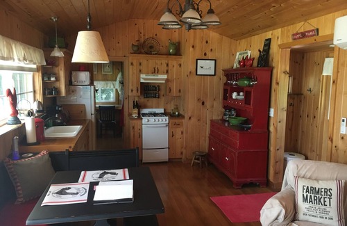 French doors open to a lovely private brick outdoor patio with BBQ, table & chairs and two lounge chairs. The patio/backyard faces a vegetable garden and is very private . During the day we have free roaming animals that you may encounter. We let the hens out about 7 or 8:00 am as they have an automatic door and they go to bed at dusk. The hens can make noise when laying an egg. We let the roosters out of the coop around 8:00am and they free range as well. The coop is out in a field away from the farmhouse by our barn and the roosters have a little sound proofing around where they sleep. But this is the country and you may hear ours and other neighbors roosters crowing or other animals. We also have pygmy goats, a dog 35 pounds, tortoise, geese, turkeys and horses along with ourselves on the property. This is a farm with animals that can make noises. There is an and pm feedings, it's a farm if animals are not your thing than we are not for you...